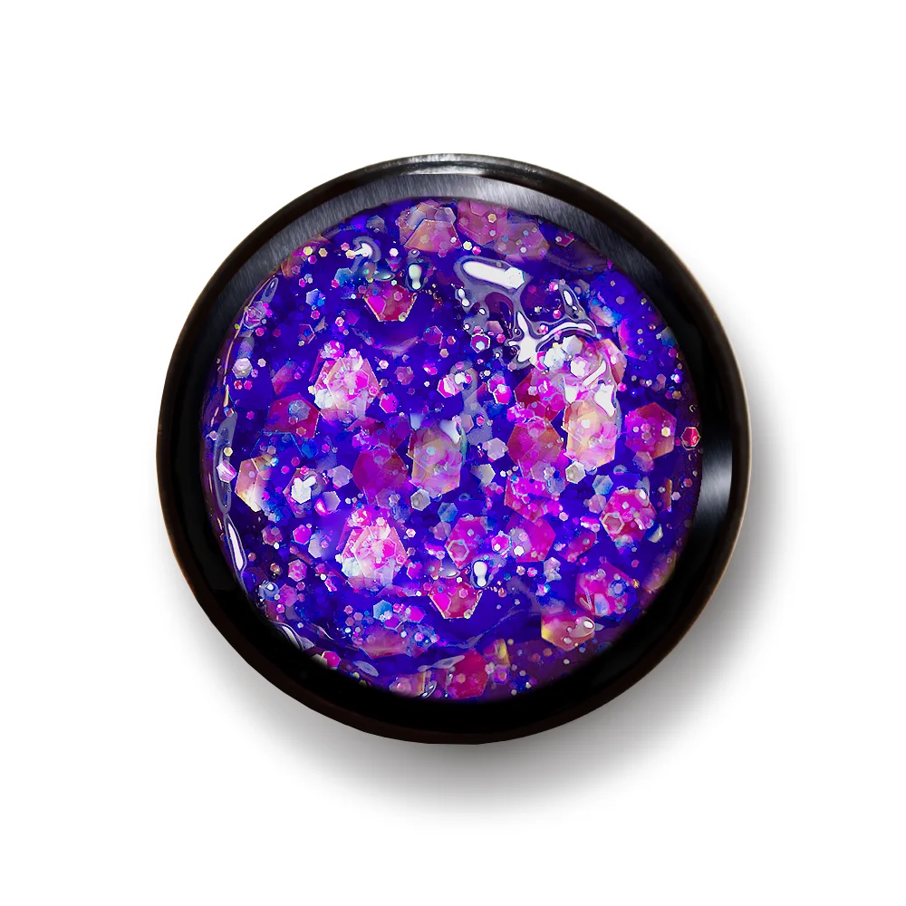 Blizgus gelis su įvairaus dydžio blizgučiais.