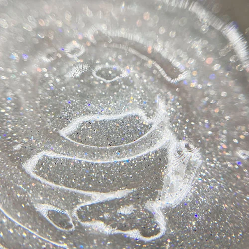 - Turintis daug mažų sidabrinės spalvos dalelių, kurių blizgesys priklauso nuo šviesos kritimo kampo ir intensyvumo.