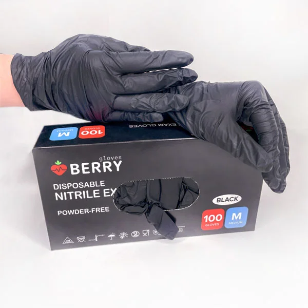Vienkartinės juodos nitrilines pirštinės „Berry gloves“, M 100 vnt.