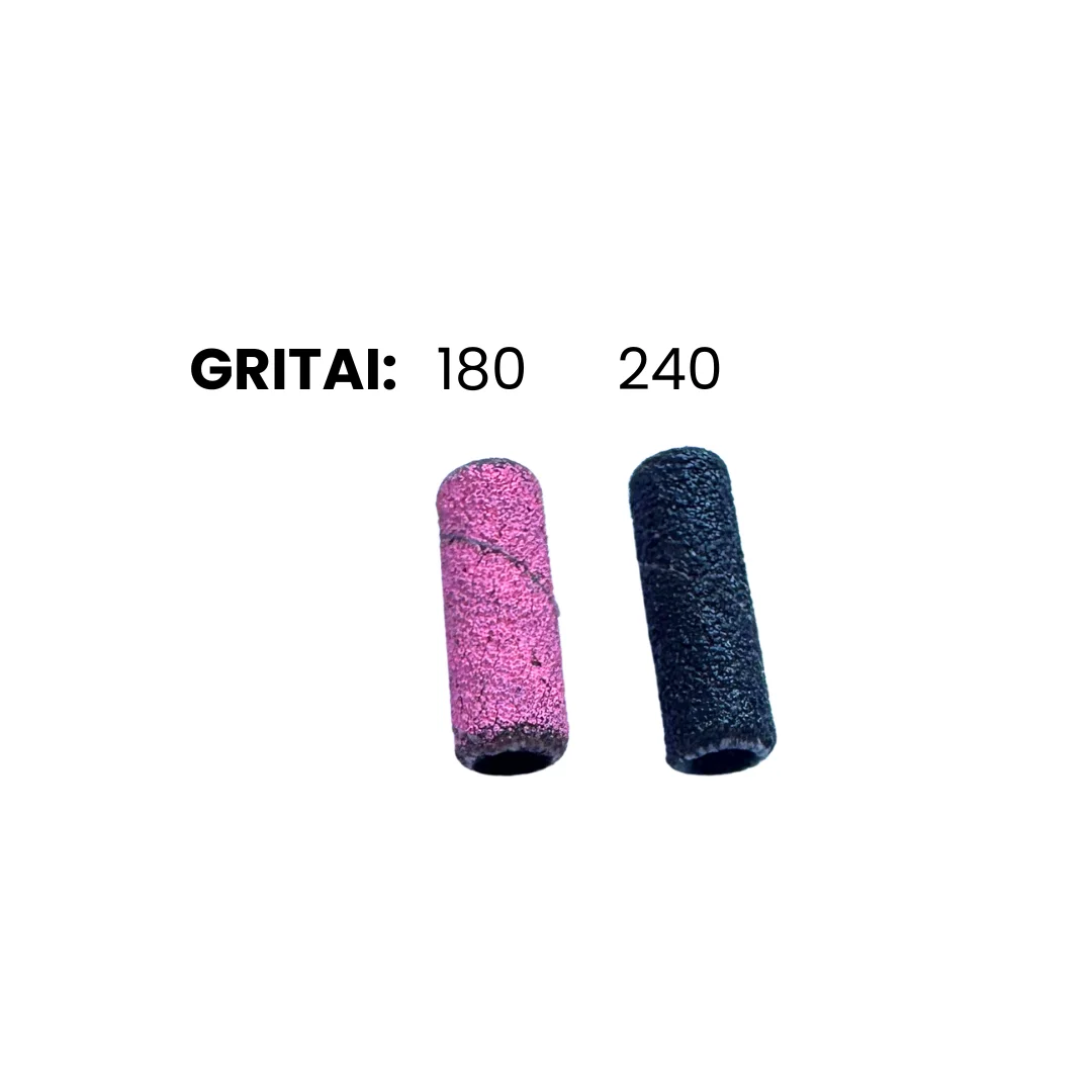 Šie būgneliai – tai 180 arba 240 gritų aštrumo abrazyvinės juostelės jau susuktos į cilindrą, kuris patogiai užsimauna ant metalinio frezos laikiklio, o panaudojus nusiplešia nuo jo.